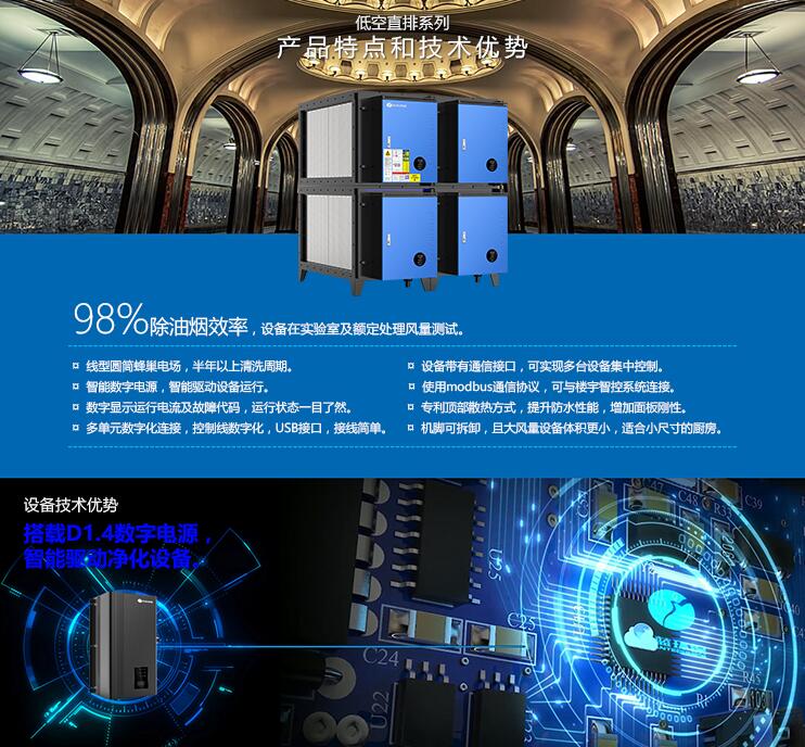 低空直排(超潔)系列,科藍環(huán)保靜電式餐飲油煙凈化器。